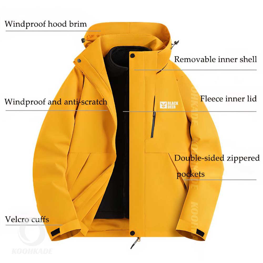 این کاپشن از دو لایه مجزا تشکیل شده که امکان استفاده بهصورت ترکیبی یا جداگانه را فراهم میکند. لایه بیرونی از 100 درصد پلیاستر مقاوم ساخته شده و در برابر نفوذ آب، باد و سایش عملکرد فوقالعادهای دارد.